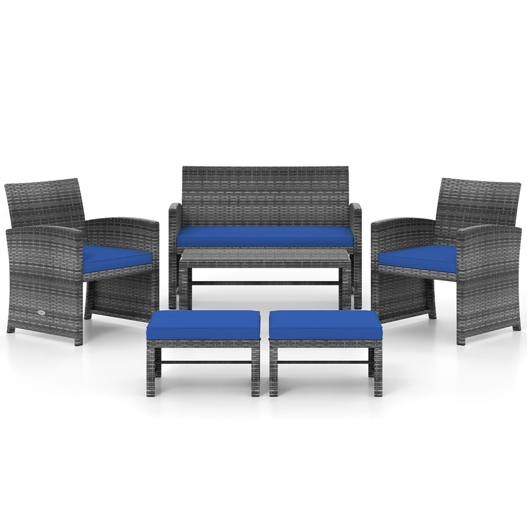 6 Pieces Patio Furniture Set Outdoor Sectional Conversation PE Rattan Sofa Set, Navy