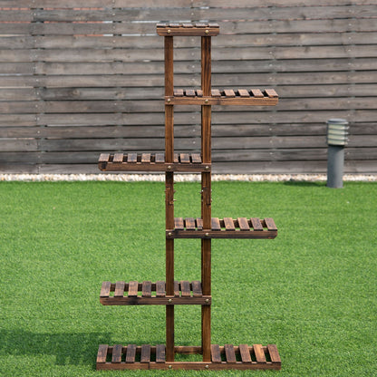 6 Tier Wooden Garden Shelf Storage Plant Rack Stand, Brown