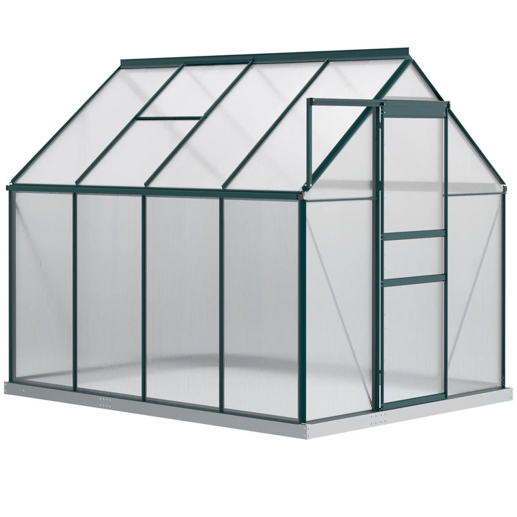 6' x 8' x 6.5' Polycarbonate Greenhouse, Walk-in, Adjustable Roof Vent, Green