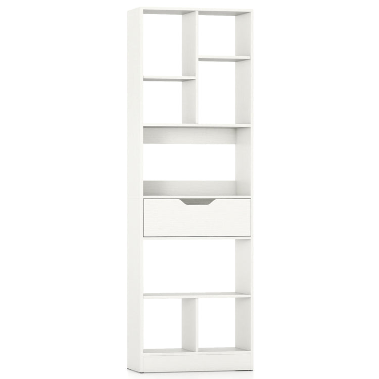 61inch Tall Freestanding Bookcase with Drawer 8-Cube Storage Organizer, White