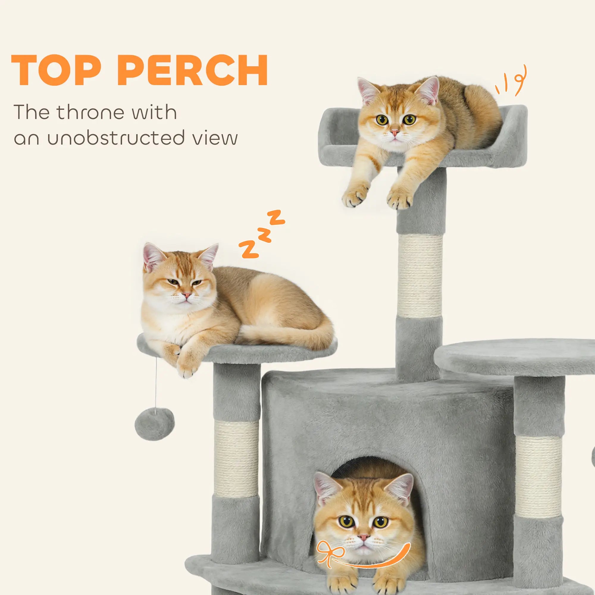 62" Cat Tree With Scratching Post, 2 Condos, Hammock, Light Grey