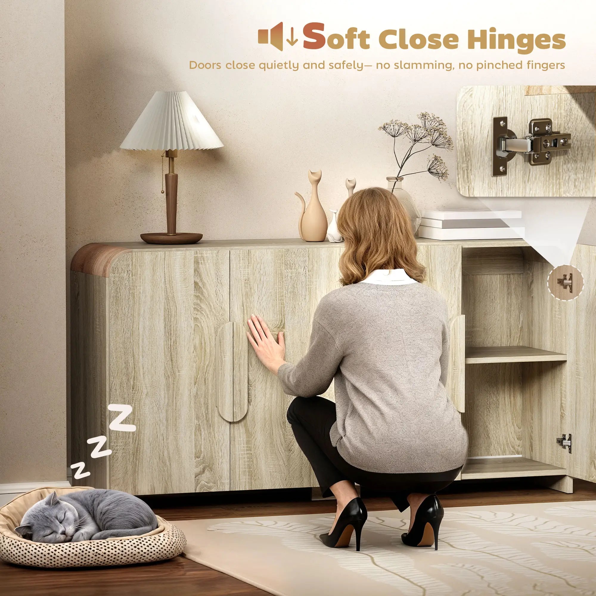 62" Sideboard Buffet Cabinet, Modern Kitchen Storage, Natural Wood