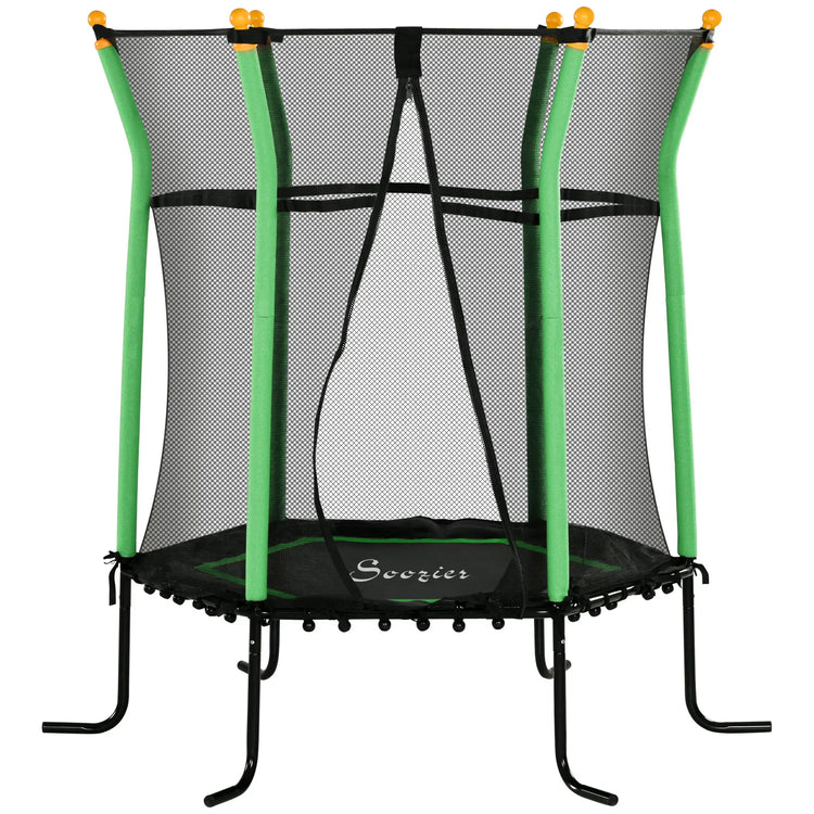 64" Kids Trampoline, Indoor Outdoor, Enclosure Net, Green