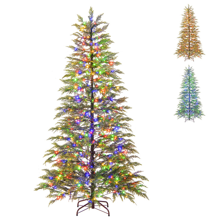 6.5 Feet Artificial Christmas Tree with Branch Tips and Colorful LED Lights, Green