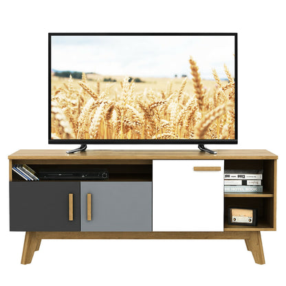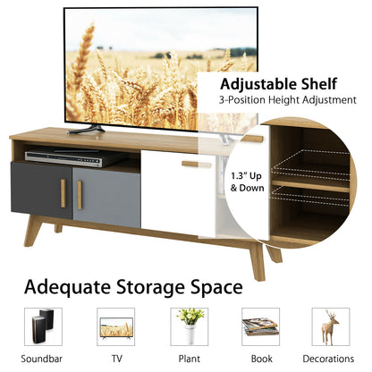 65 Inch TV Stand with 3 Storage Cabinets and 3 Open Shelves for Living Room, Natural