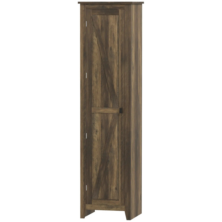 Upgrade your kitchen storage with this sleek, space-saving single door pantry cabinet. Featuring a 5-tier design with adjustable shelves, it offers customizable organization for all your culinary essentials. Its farmhouse elegance and anti-tipping safety features make it a perfect addition to any modern kitchen.