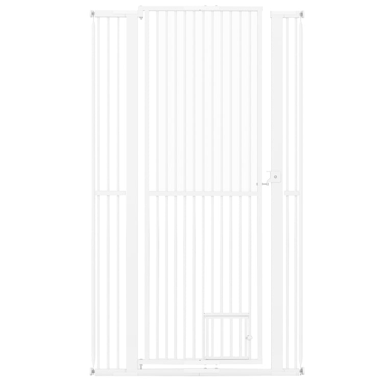 Easy Access: The gate features a large main door with a safety lock that swings open from both sides, allowing for easy passage. Additionally, it includes a lockable small door at the bottom, making it convenient for smaller pets to pass through while keeping larger ones contained.