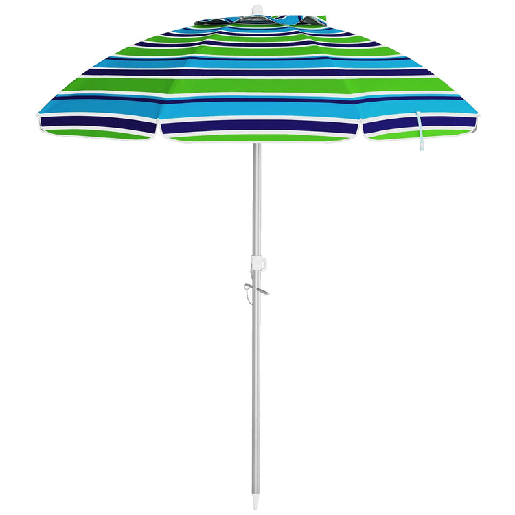 6ft Adjustable Beach Umbrella, Sand Anchor, Tilt Bag, 40+ UV, Multicolour