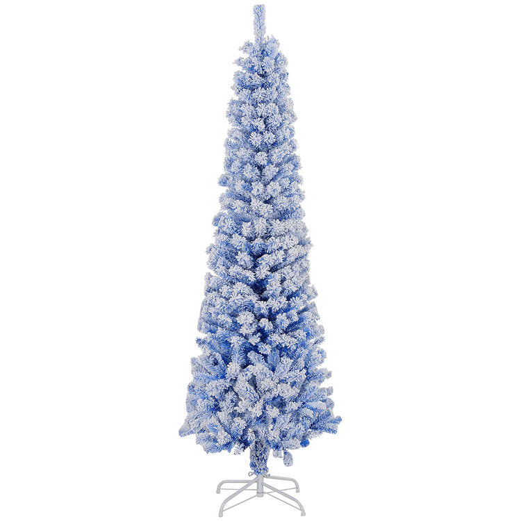 6ft Flocked Pencil Christmas Tree, Realistic Branch Tips, Blue