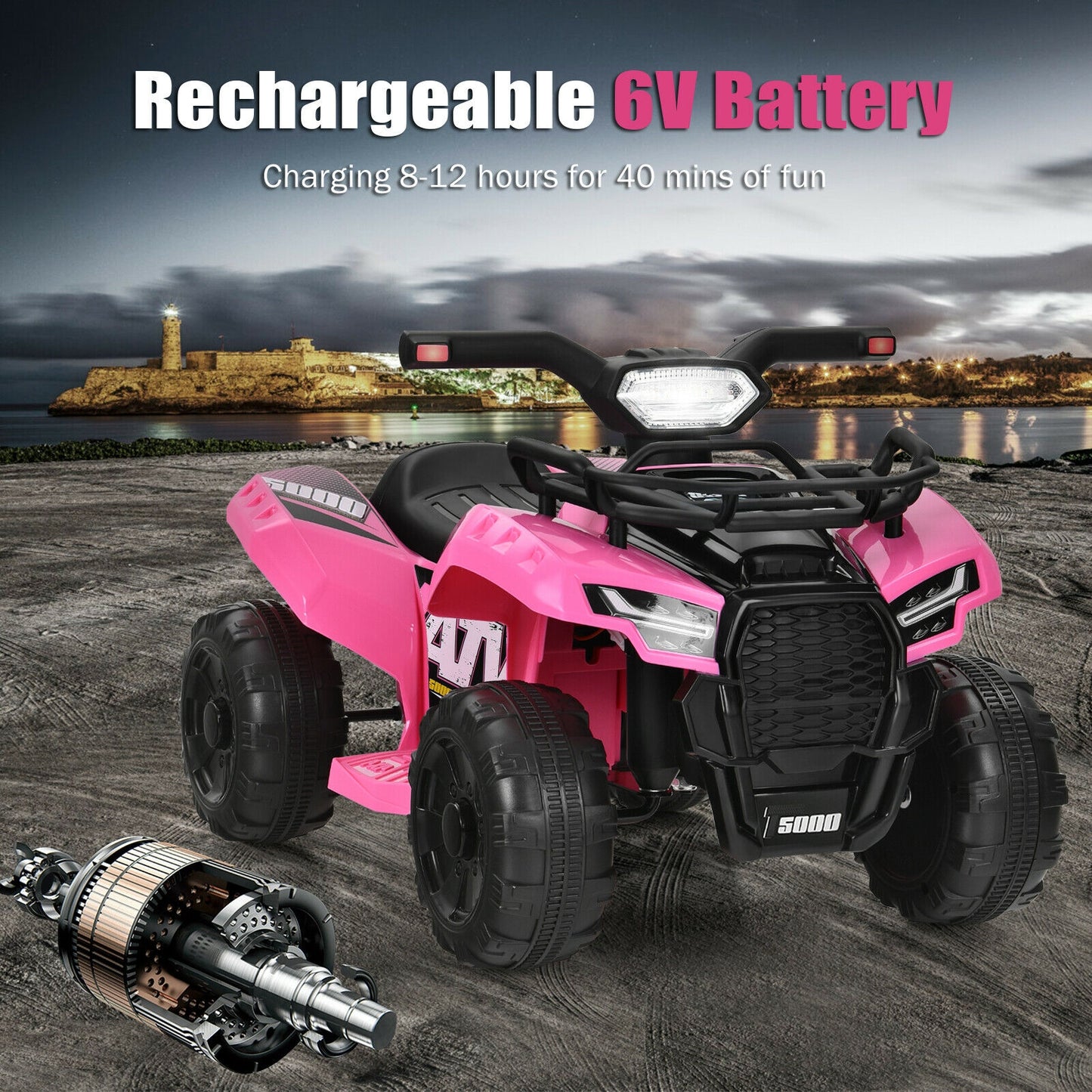 6V Kids ATV Quad Electric Ride On Car with LED Light and MP3, Pink