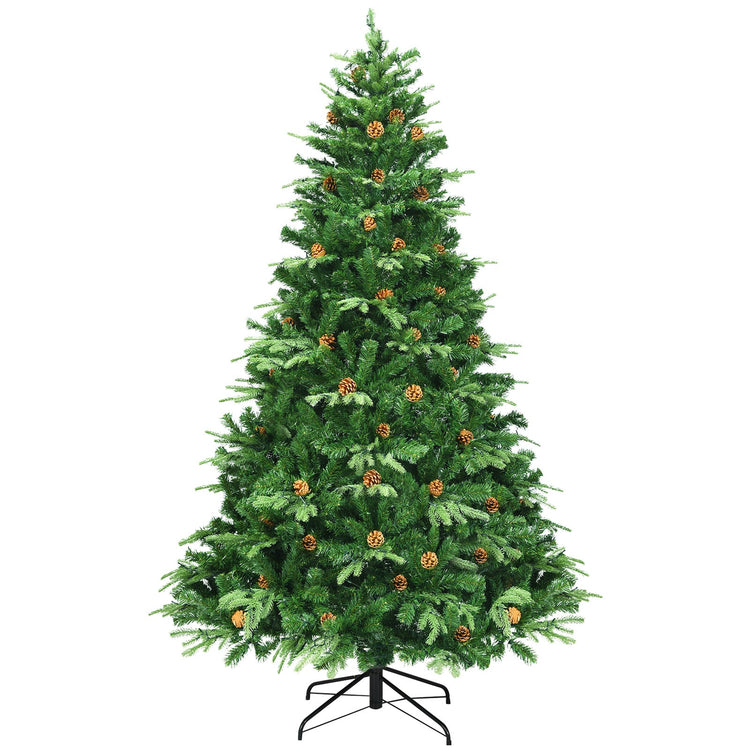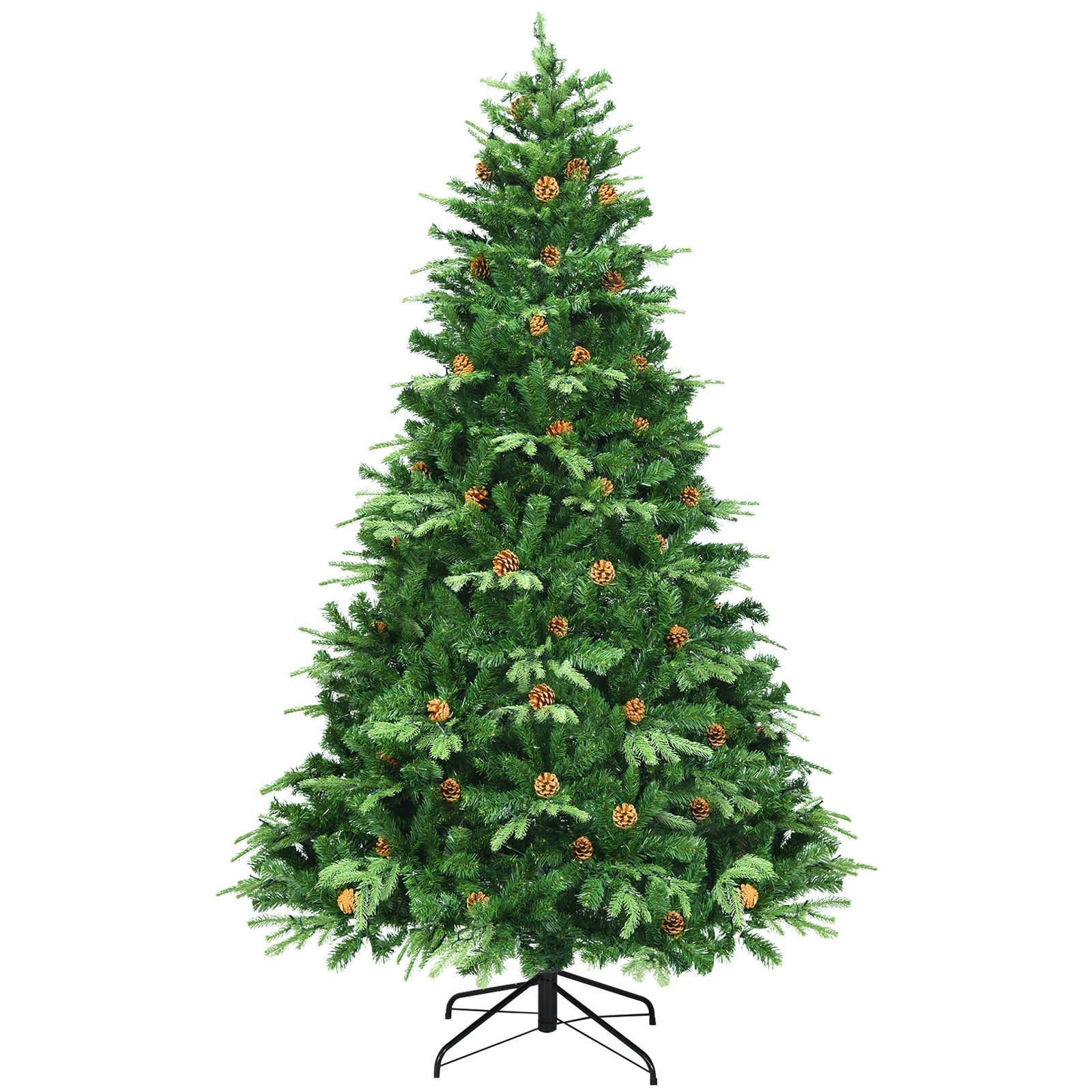 7.5 ft Artificial Christmas Tree, LED Lights, Pine Cones, Green