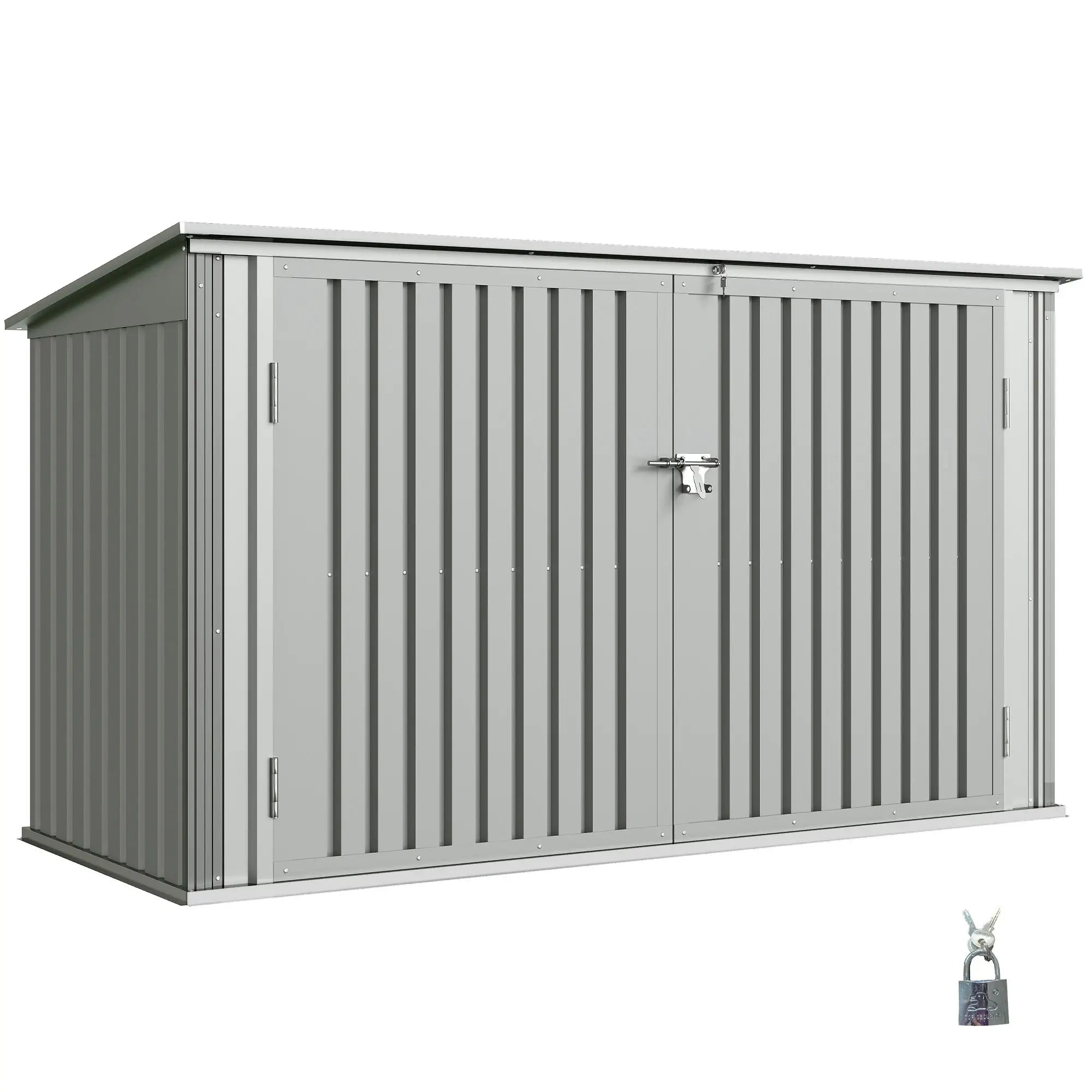 7.6 x 3.4ft Storage Shed, 3 Bin Organizer, Lockable Doors, Silver Grey