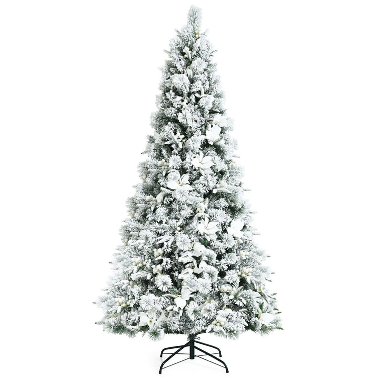 7 Feet Snow Flocked Christmas Tree with Poinsettia Flowers, White