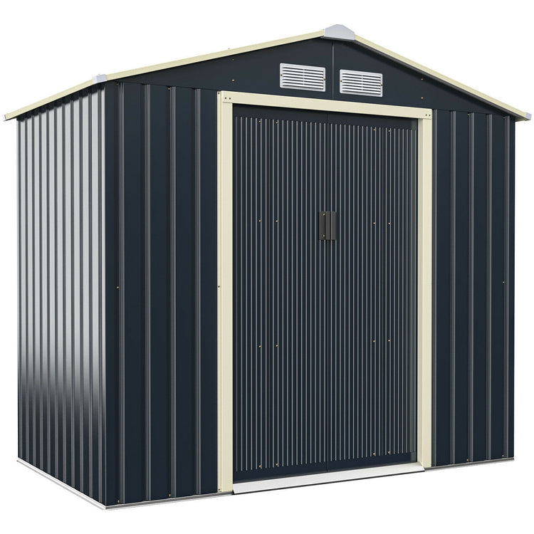 7 Feet x 4 Feet Metal Storage Shed with Sliding Double Lockable Doors, Gray