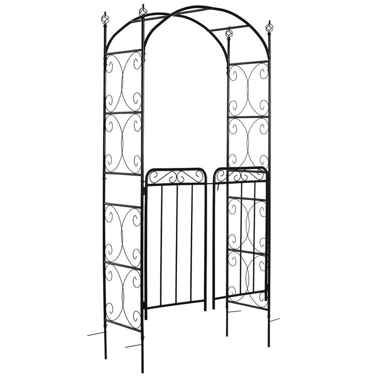 7' Metal Garden Arbor Arch, Scrollwork Doors, for Ceremony, Weddings