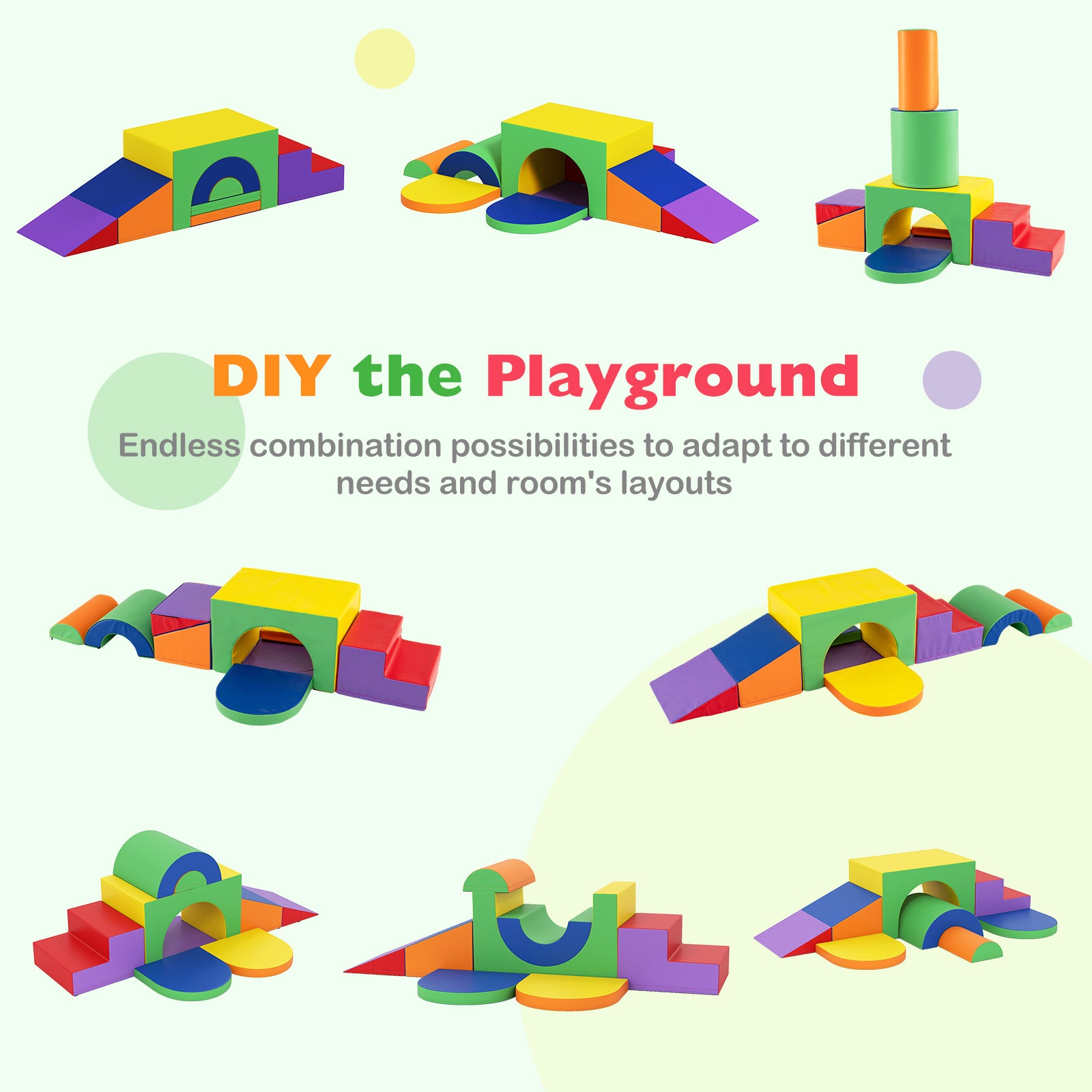 DIY the Playground: The 7-piece indoor foam blocks can be built into castles, tunnels, or stepping paths, sparking limitless creativity; the wedge cushion cleverly transforms from a slide to a cube block, and the reversible tunnel doubles as a recliner chair. Hook-and-loop fasteners secure stability for endless imaginative fun.
