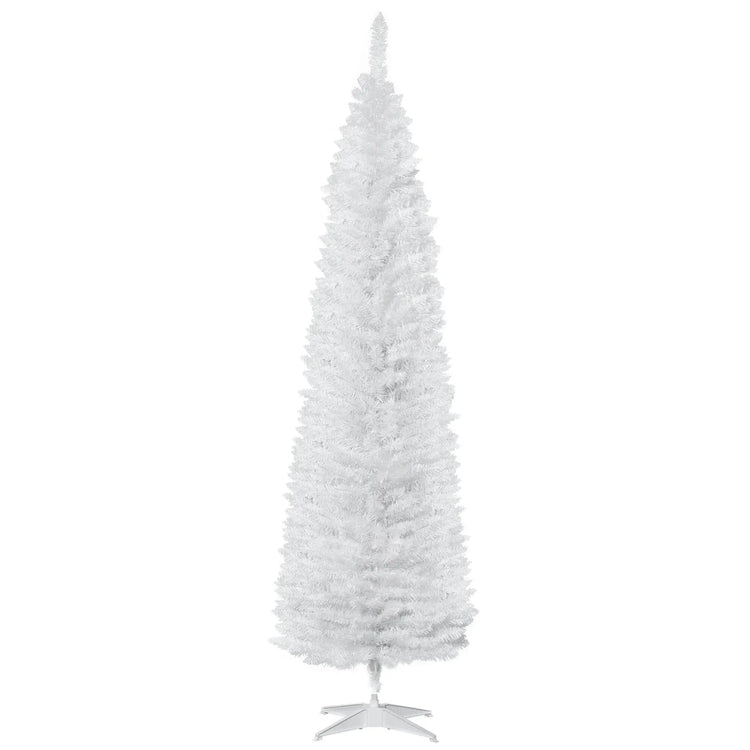 7' Slim Artificial Christmas Tree, Realistic Branches, Sturdy Metal Stand, White
