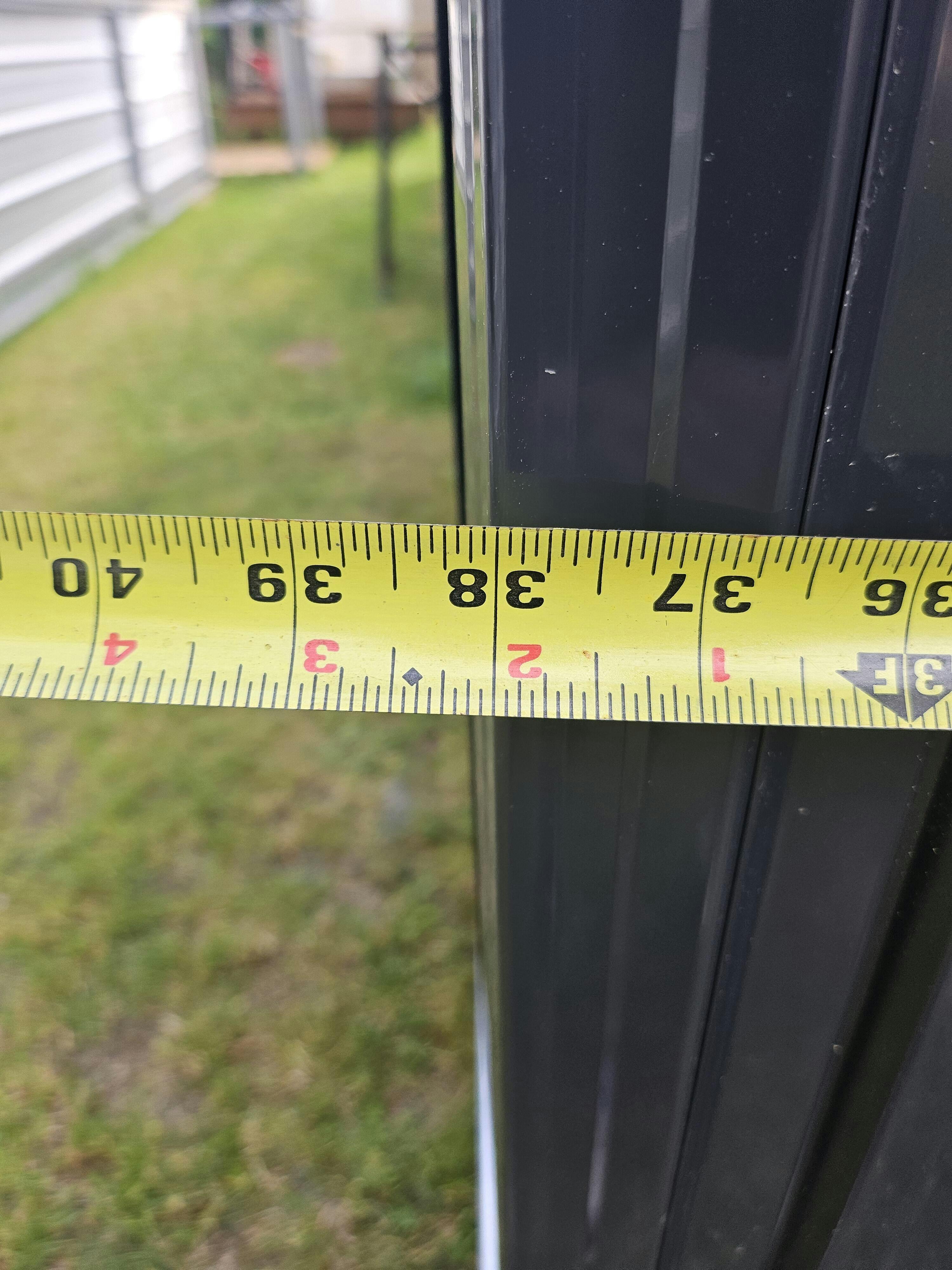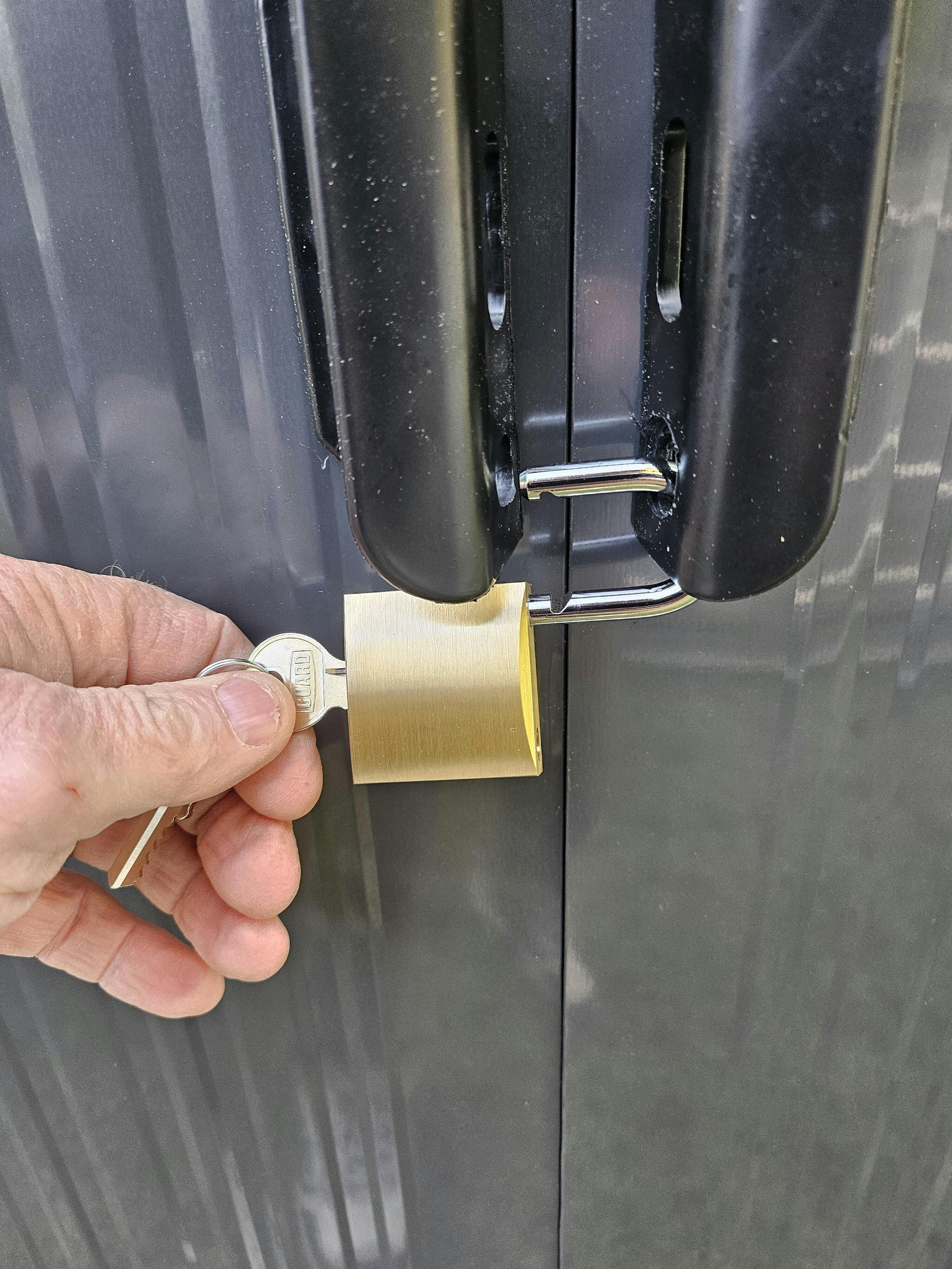 I should have looked at the specks closer, The description says 7' x4' but it actually is 6'8" x 3'2" we were very disappointed on how much smaller it is. The way the Handles are mounted a regular padlock will not work. the overall product is good and service and shipping was great.