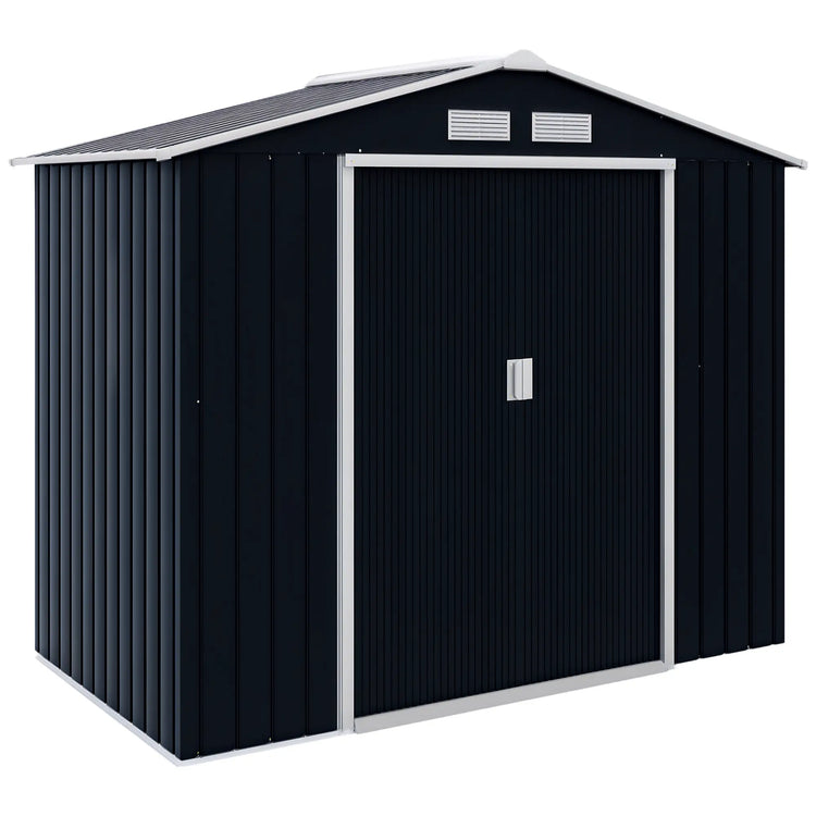 7' x 4' x 6' Garden Storage Shed, Metal Tool House, Dark Grey
