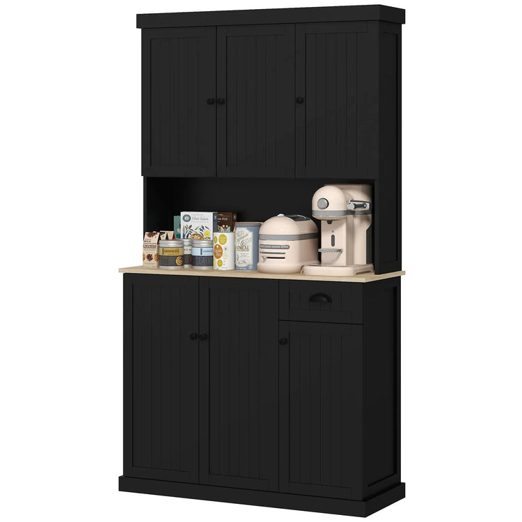 71 Inch Kitchen Pantry Buffet Hutch Cabinet Microwave Stand, Black