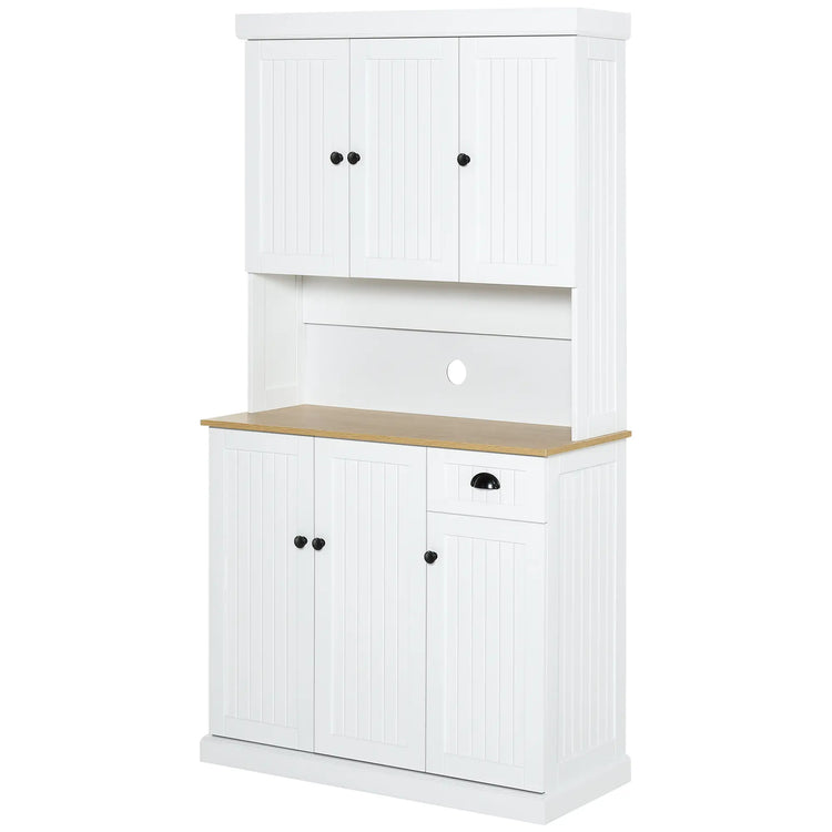 71 Kitchen Pantry Buffet, Hutch Storage Cabinet, Microwave Stand, Oak, White