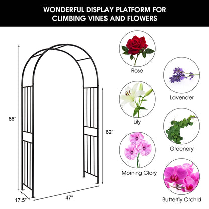 Transform your outdoor space with this elegant 7-foot tall garden arch, perfect for climbing plants and decorative ornaments. Crafted from durable steel with a weather-resistant finish, it offers stability and easy assembly for creating beautiful garden corridors or enhancing special occasions.