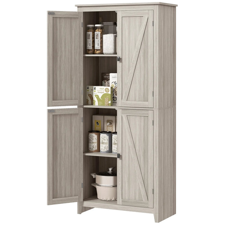 72" Freestanding Storage Cabinet, Kitchen Pantry with Doors, Shelves, Grey