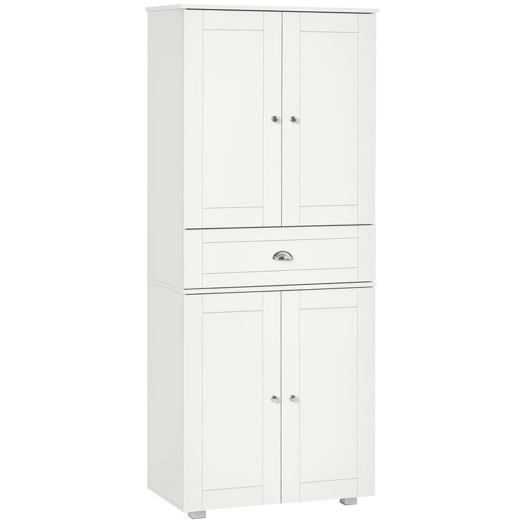 72" Kitchen Pantry Cabinet, 4 Doors, 3 Adjustable Shelves, White