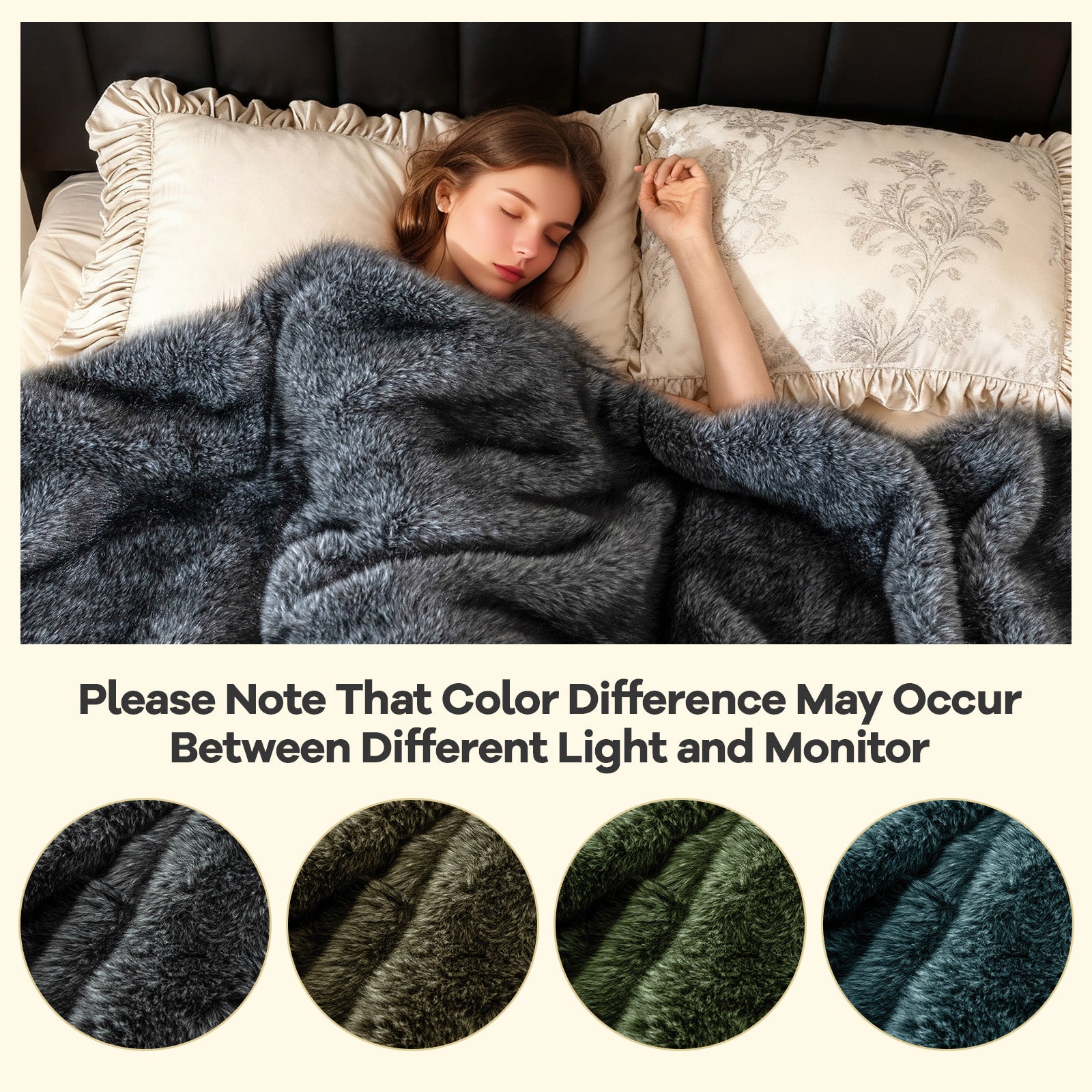 Unmatched Cozy Experience: Indulge in luxurious comfort with the faux fur throw blanket, featuring a soft fleece lining and an exterior of cozy faux wolf fur measuring 1.5"-2.4" long. This plush design surrounds you in gentle warmth, creating a peaceful retreat.