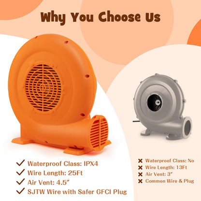 680W Air Blower (1.0HP) for Inflatables with 25 feet Wire and GFCI Plug, Orange