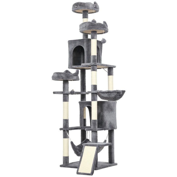 76" Large Cat Tree, 8 Scratching Posts, 3 Plush Beds, 2 Hammocks, Dark Grey
