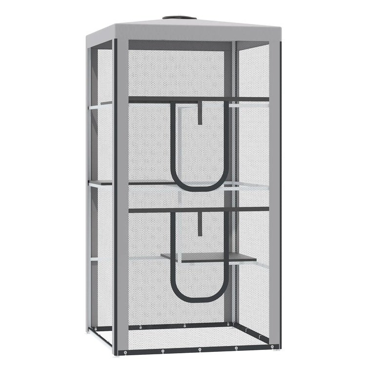 79" Cat Cage, Large Outdoor Kitten House, Indoor Pet Kennel, Grey