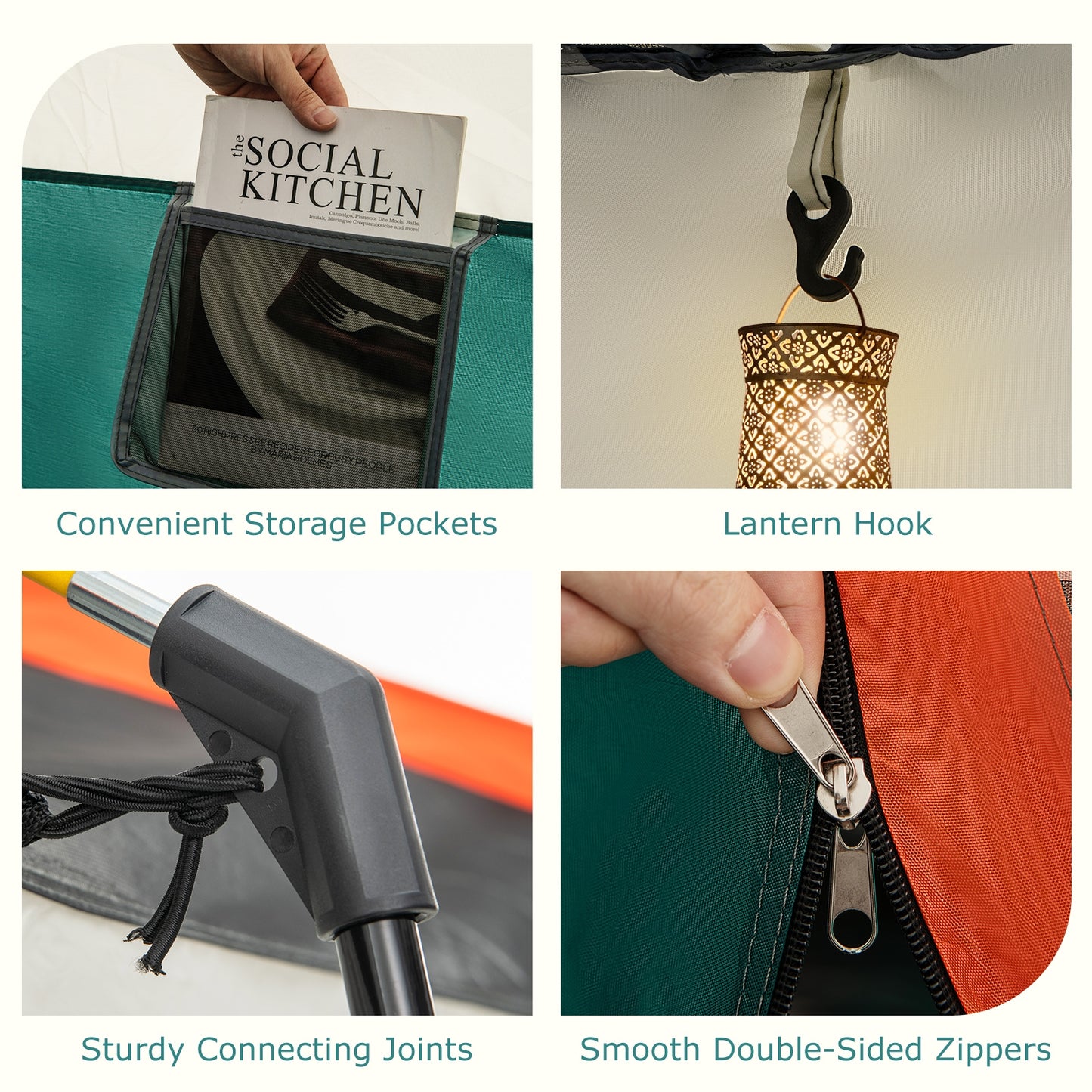 - PU 3000 mm waterproof floor keeps the interior dry and comfortable.