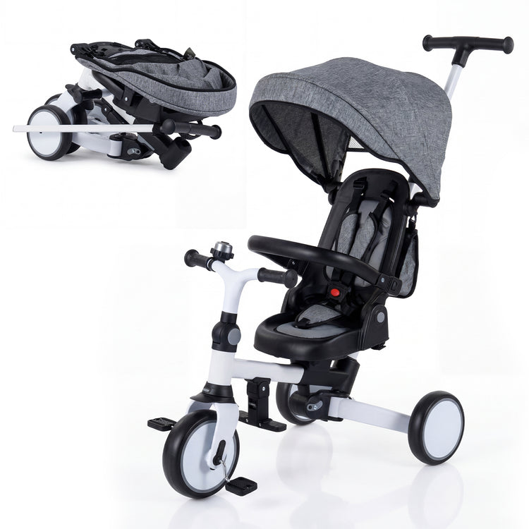 8-in-1 Folding Kids Tricycle with Removable Canopy and Push Handle, Gray