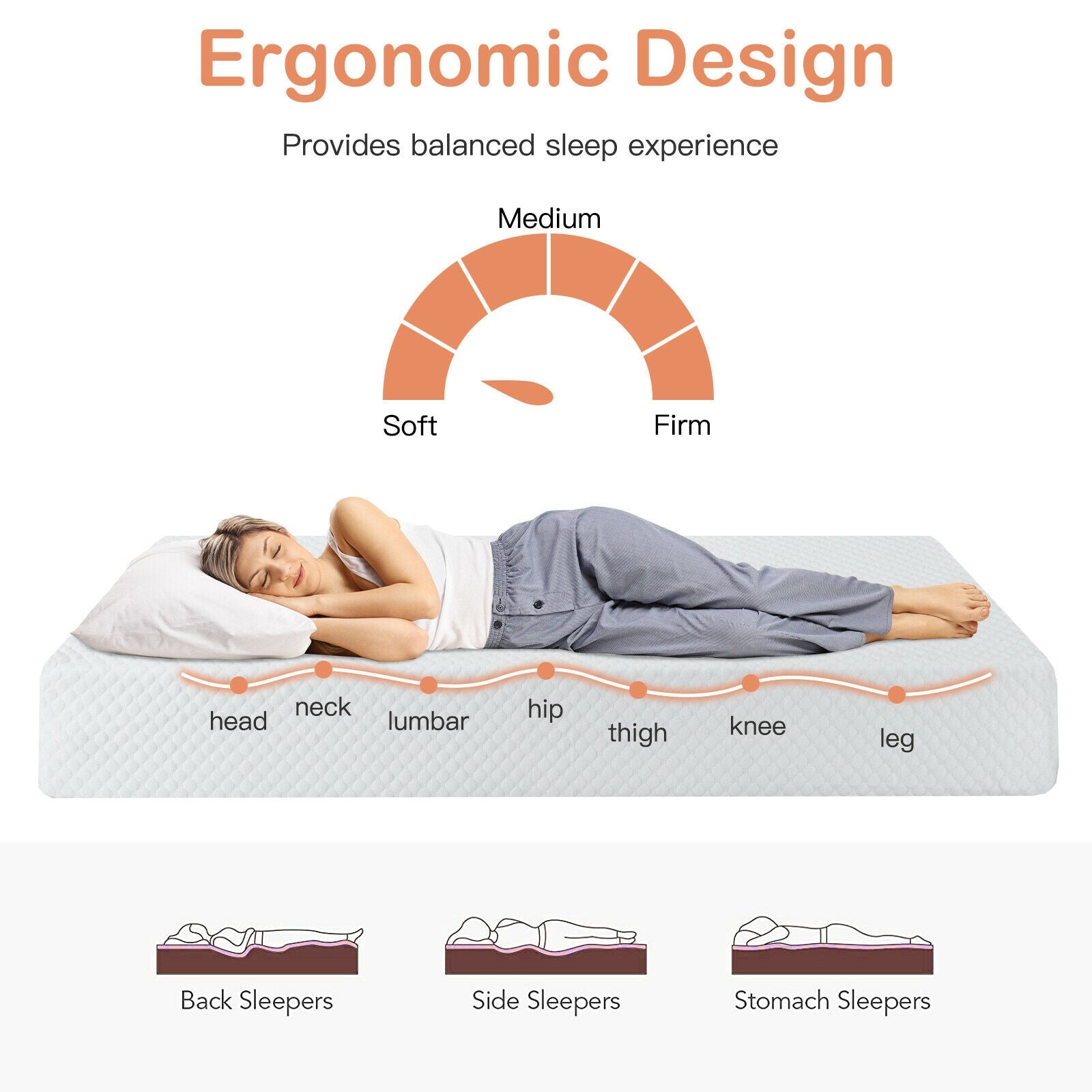 Ergonomic Design for High Comfort: This mattress perfectly fits the body curve, which alleviates the pressure on your spine for minimal fatigue and remarkable comfort. Additionally, an 8" mattress with sensitive rebound ability keeps you away from the feeling of collapse.