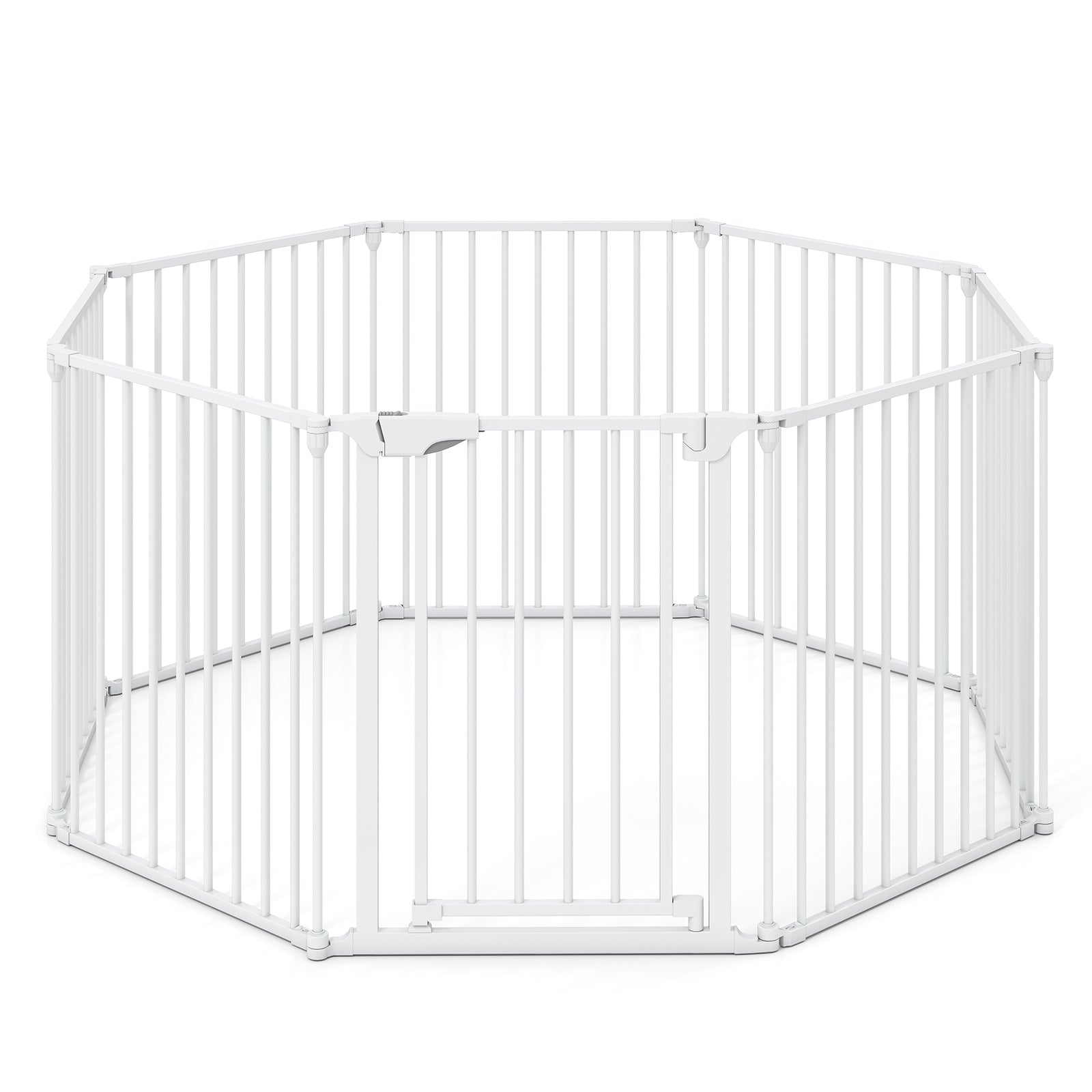 Versatile Protection for Different Needs: Serving well beyond a simple play yard, the adaptable gate offers protection as a fireplace screen, an oversize baby gate for wide doorways, or a pet enclosure. It is a multifunctional barrier designed to safeguard little ones and animals across various household situations.