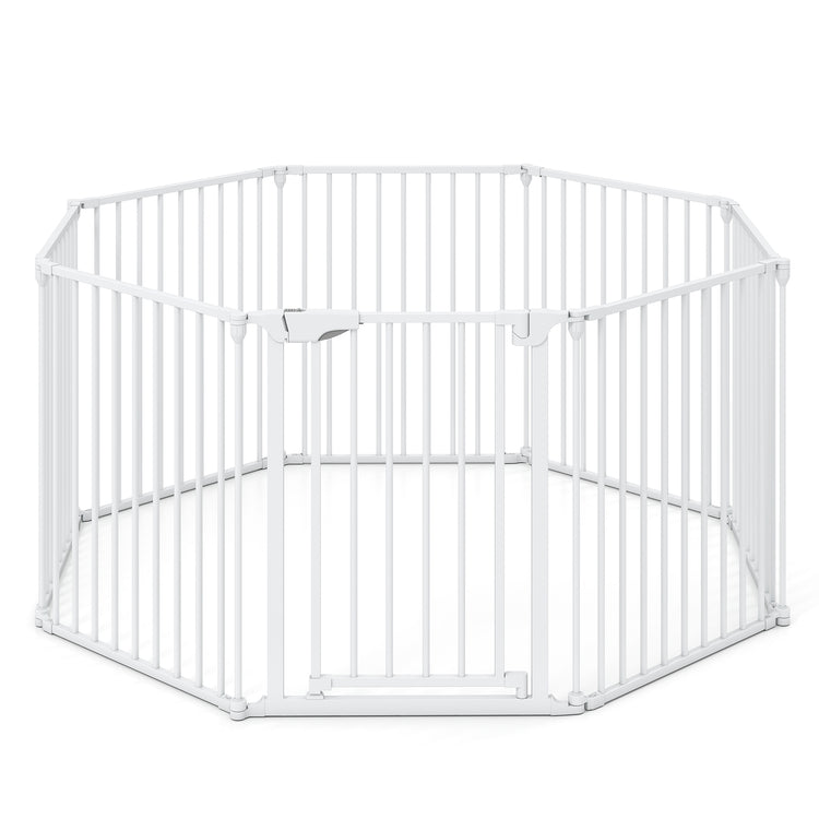 8-Panel Extra Wide Baby Gate Adjustable Pet Safety Fence with Auto-close Door, White