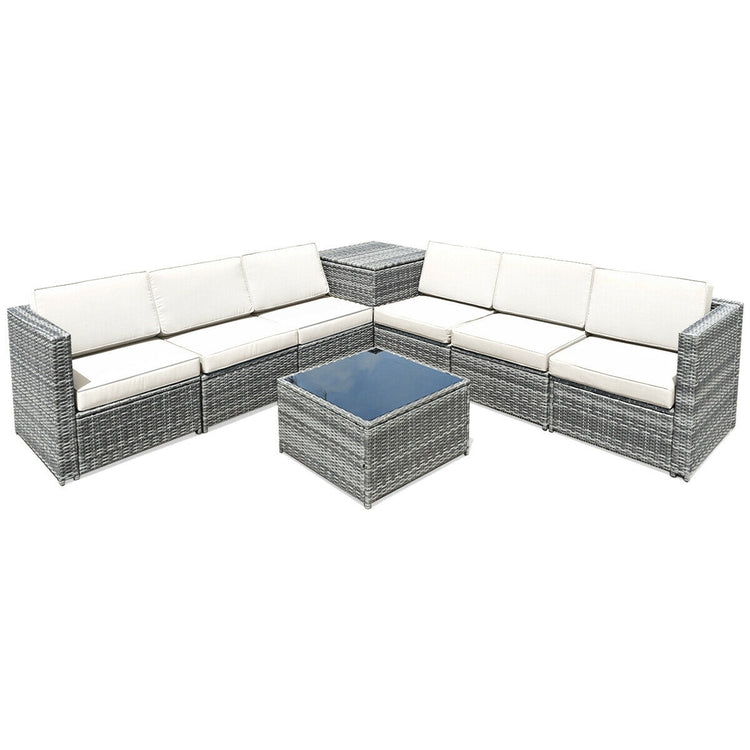 8 Piece Wicker Rattan Sofa Dining Set, With Storage Table, White