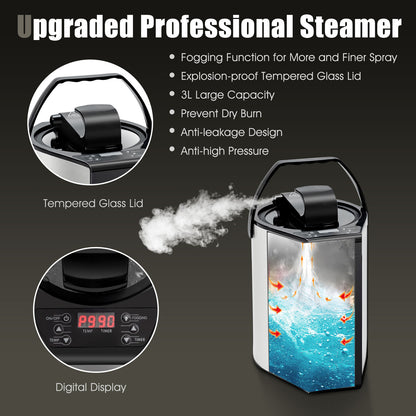 Upgraded Steamer with Atomizing Function: The ETL certified 3L steam pot is equipped with explosion-proof tempered glass lid, automatic power-off function and leakage protection, which ensures your safety when in use. The atomizing function brings finer and more spray, so it is more moist and skin-friendly.