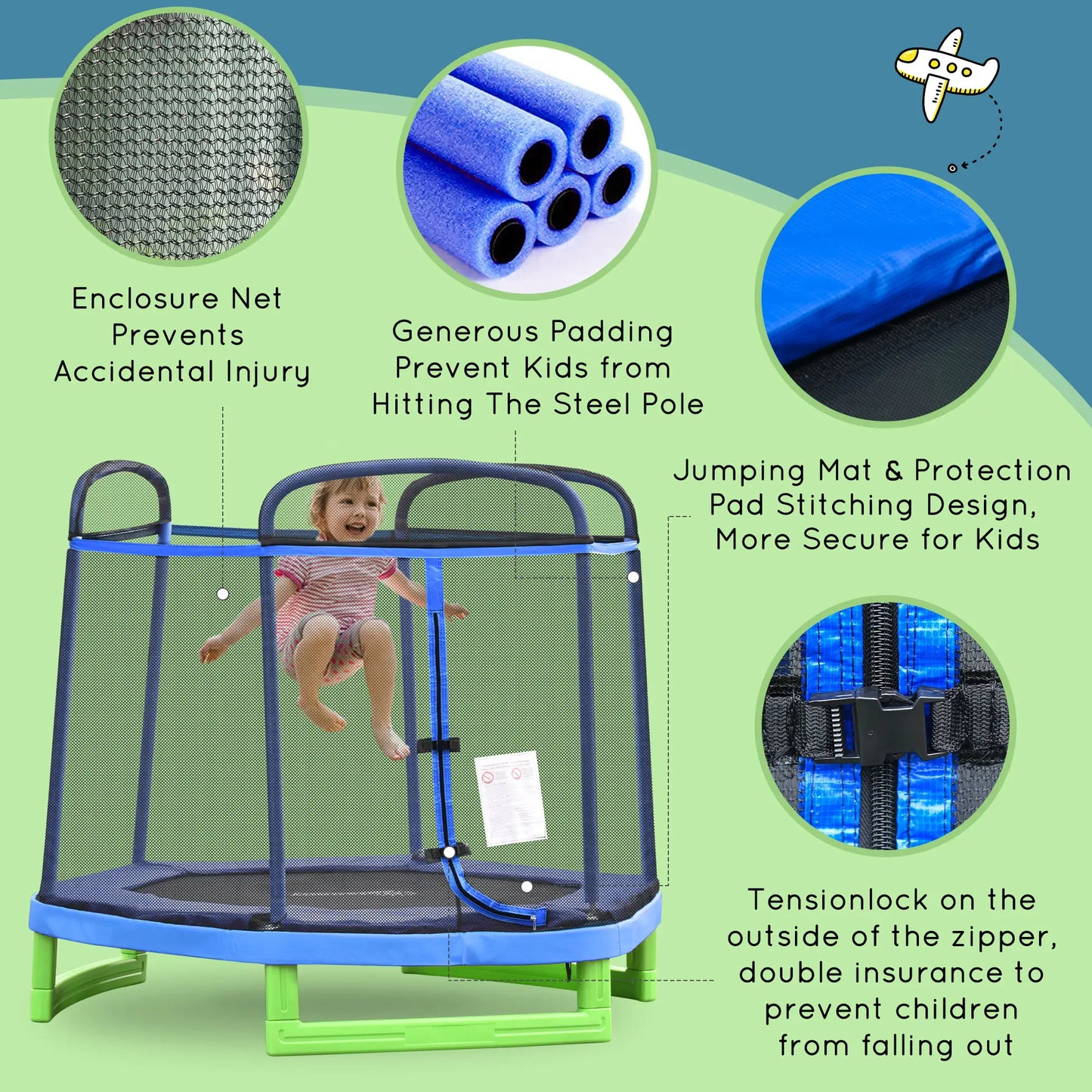 84.75" Kids Trampoline 7 FT with Safety Net, Blue