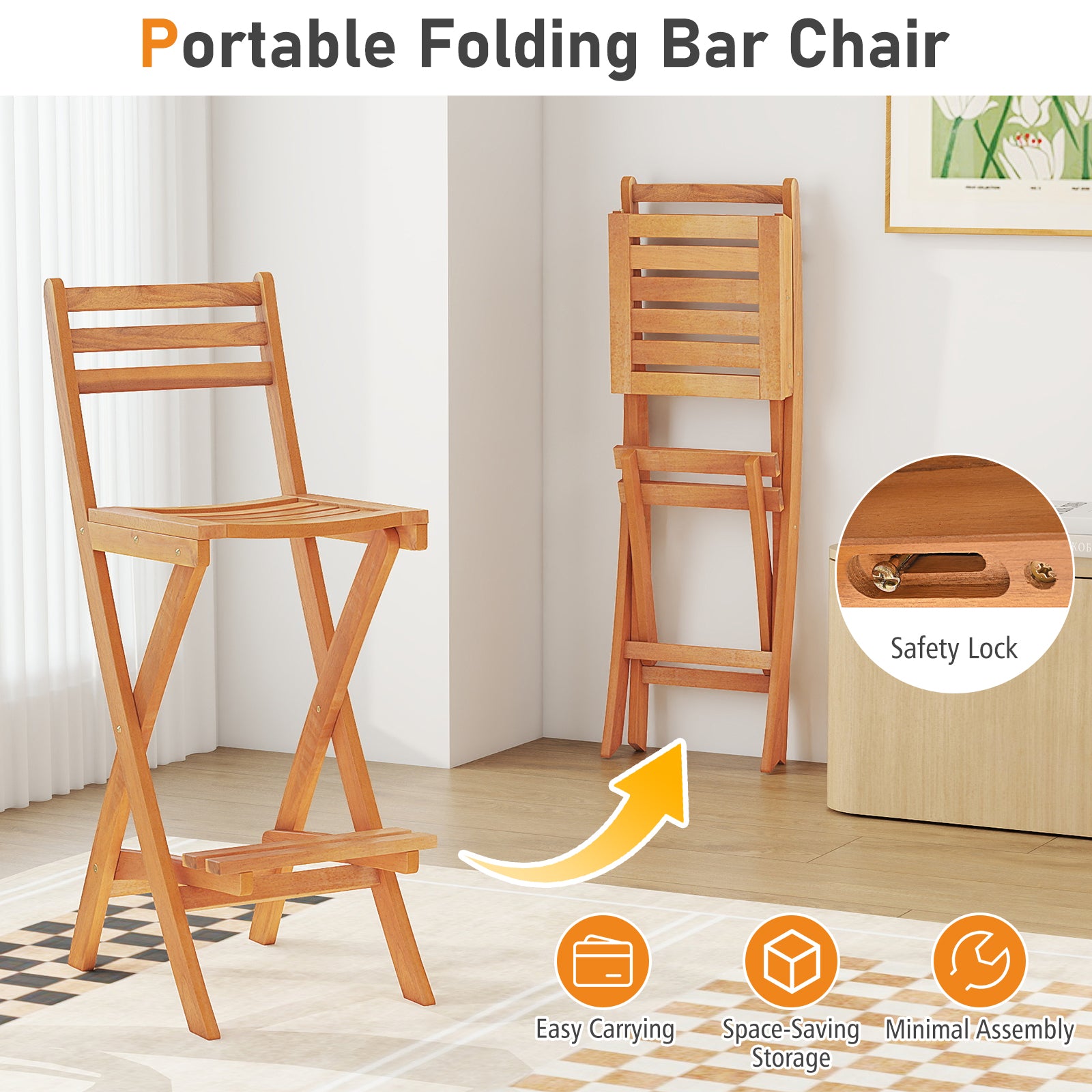 Solid Acacia Wood Build: Crafted from natural acacia wood, this folding barstool features high-strength build and splinter-free surface, ensuring long-lasting outdoor use. Note: Please oil (not included) the wood surface regularly.Space-Saving Folding Design: Easily fold the bar height chair by releasing the safety lock. The 45.5" x 15.5" x 6" compact folding size of the bar stool allows for easy carrying and space-saving storage, offering more convenience.