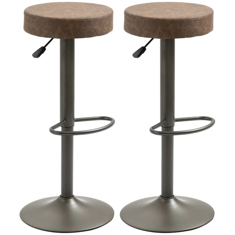 Adjustable Bar Stools Set of 2, Swivel with Footrest, PU Leather, Brown