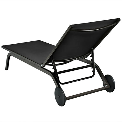Discover ultimate outdoor relaxation with this adjustable chaise lounge chair, featuring a 6-position backrest for versatile lounging, a sturdy aluminum frame, breathable fabric, and easy mobility with 2 wheels. Perfect for poolside, patio, balcony, or beach use, it combines durability, comfort, and style for adults and homeowners seeking a practical sun lounger.