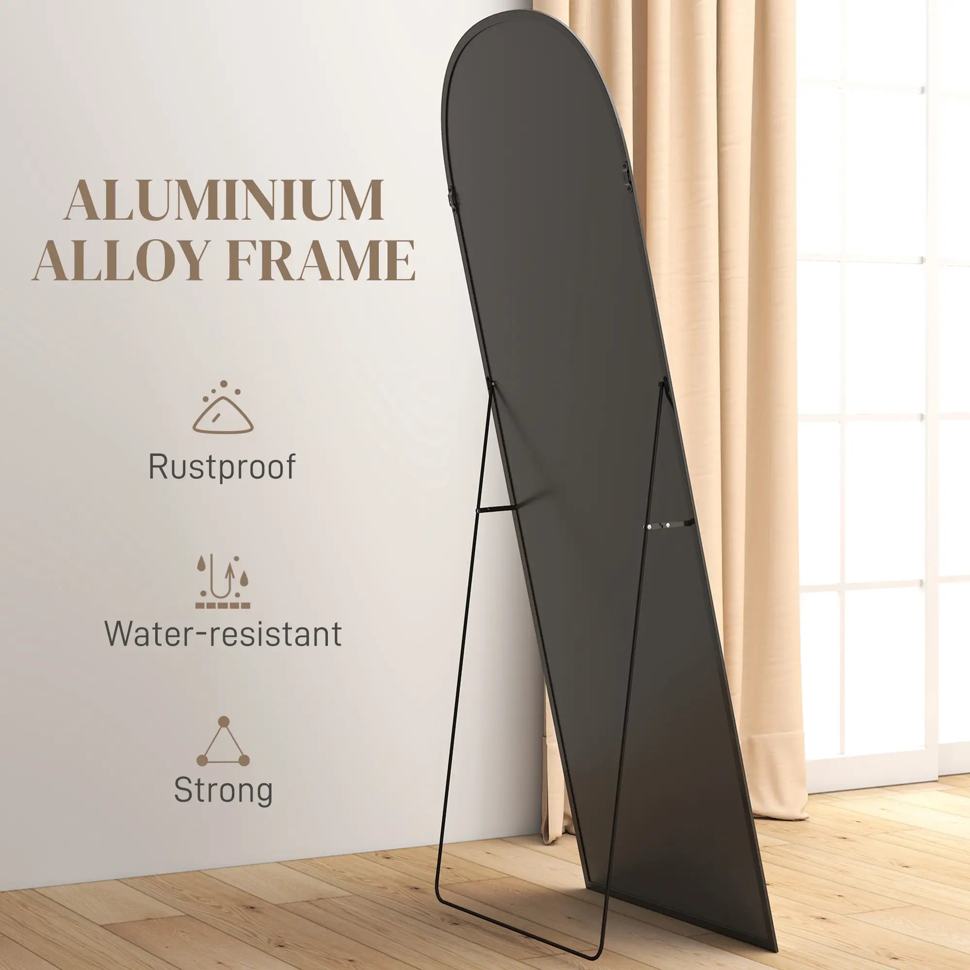 Arched Standing Mirror, 64" x 24", Full Length Mirror, Black