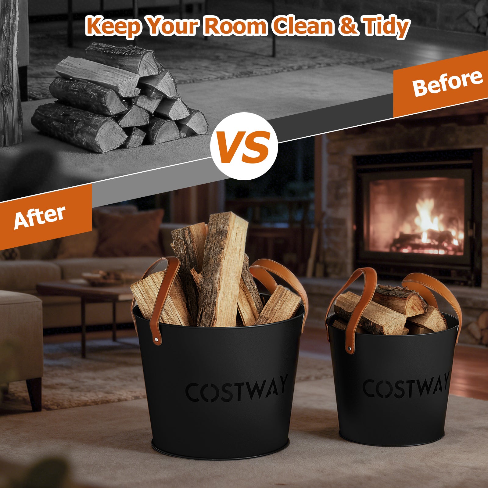 Ash Bucket Set of 2: This ash cleaning organizer set comes with 2 buckets with total 16 Gal large capacity. The 2 metal bucket are convenient for you to store and transport ash, pellets, logs, coals, and more.Keep Your Fireplace Clean: With these ash cans, you can easily clean up ash, coals, and embers, keeping your fireplace clean and free from debris. Meanwhile, the buckets are also easy to clean, which saves your time and energy.