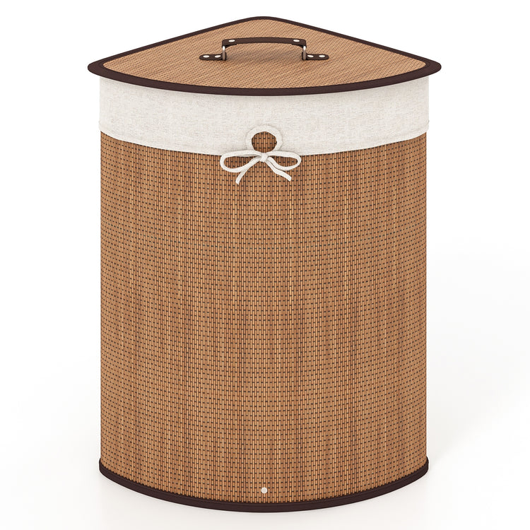 Bamboo Laundry Hamper Basket with Lid and Removable Liner Bag, Yellow