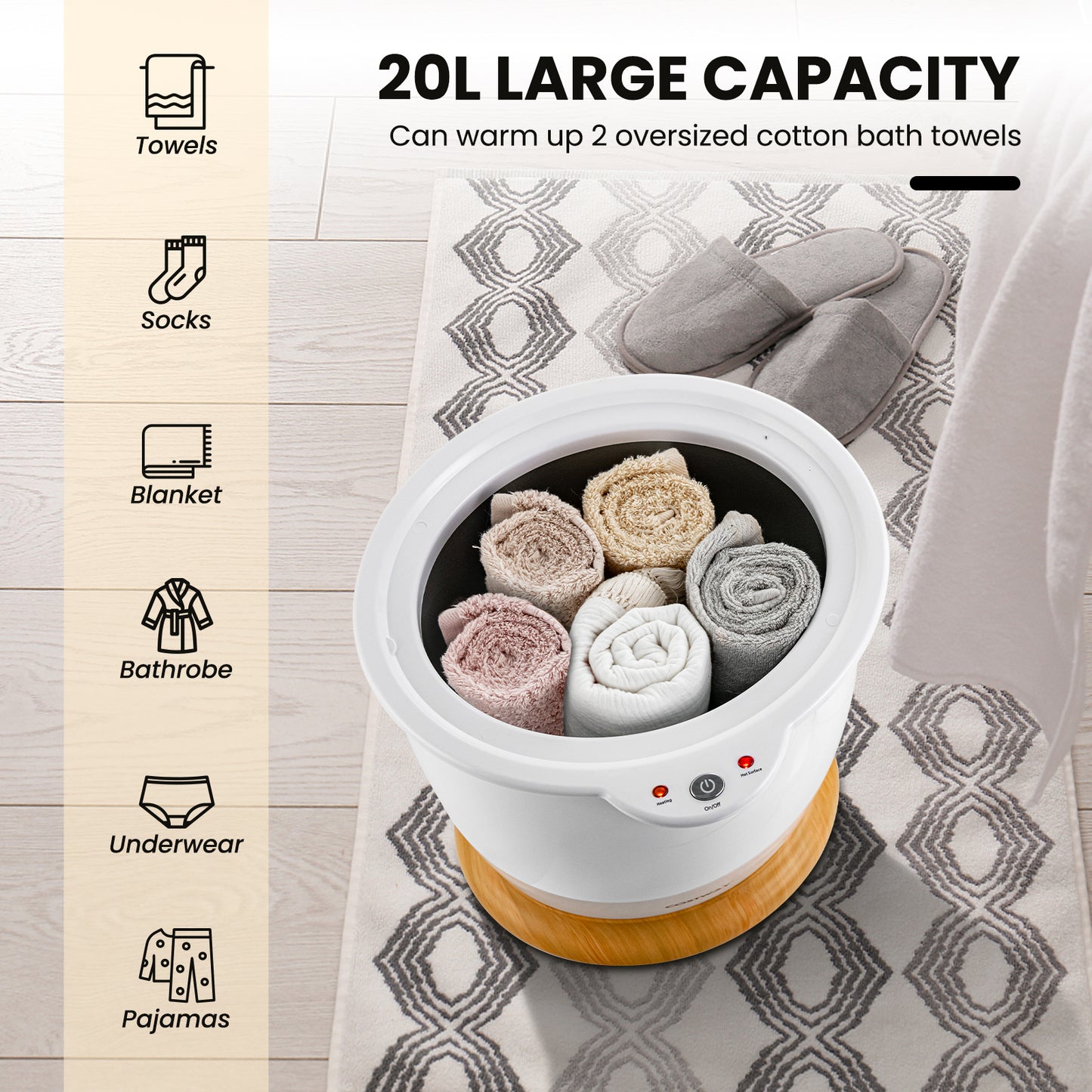 Large Capacity and Wide Use: The bucket towel warmer measures 14" x 13" x 18.5" (L x W x H), and has a large capacity of 20L to easily accommodate two 40" x 70" bath towels, underwear, bathrobes and meet family demands. In addition, this large towel warmer is suitable for home, spa, salon, pool and more situations.