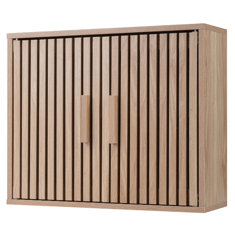 Bathroom Wall Cabinet, 2 Slatted Doors, 3 Adjustable Shelves, Natural