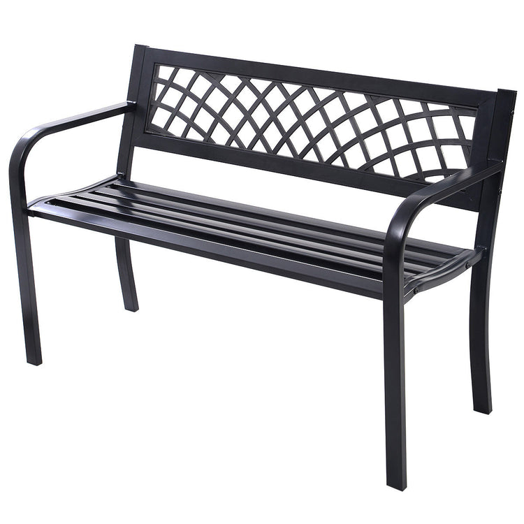 Easy to Keep Clean: With immerse painting and sleek surface, it is easy for you to clean the garden bench. Metal slats seat is perfectly suitable for outdoor use because gap between slats is good for draining on rainy day.