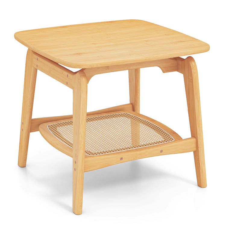Boho Bamboo Sofa Side Table with Faux Rattan Storage Shelf, Natural